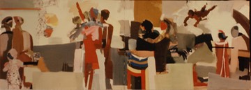 Dispersion / Acryl auf Leinwand (Ausarbeitung und Finish eines Gruppenwerkes durch GEW), ca. 600 x 250 cm