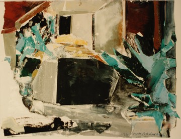 Eigens eingefärbtes Papier und Acryl auf Papier, 20 x 29 cm