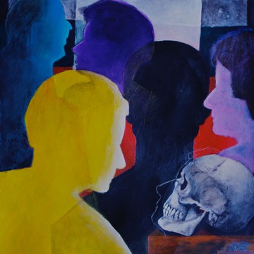 Verschiedenfarbige Papiere sowie Acryl auf Papier, montiert auf Leinwand, 49 x 50 cm